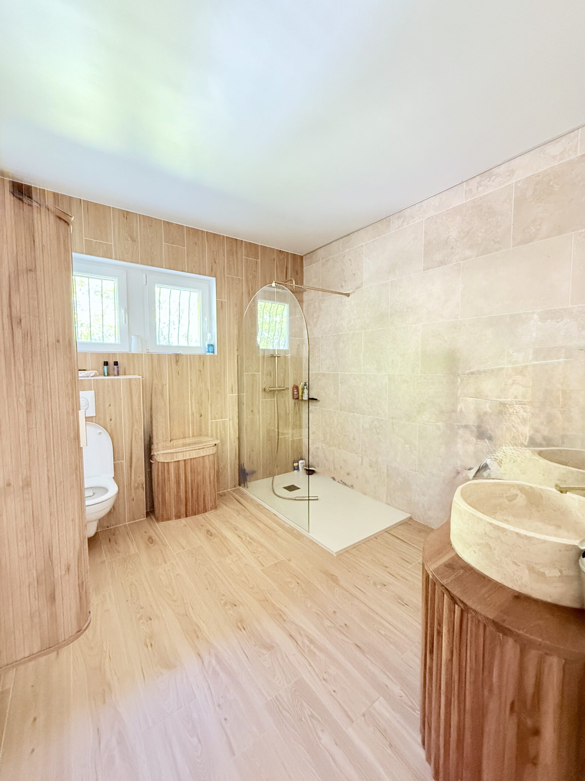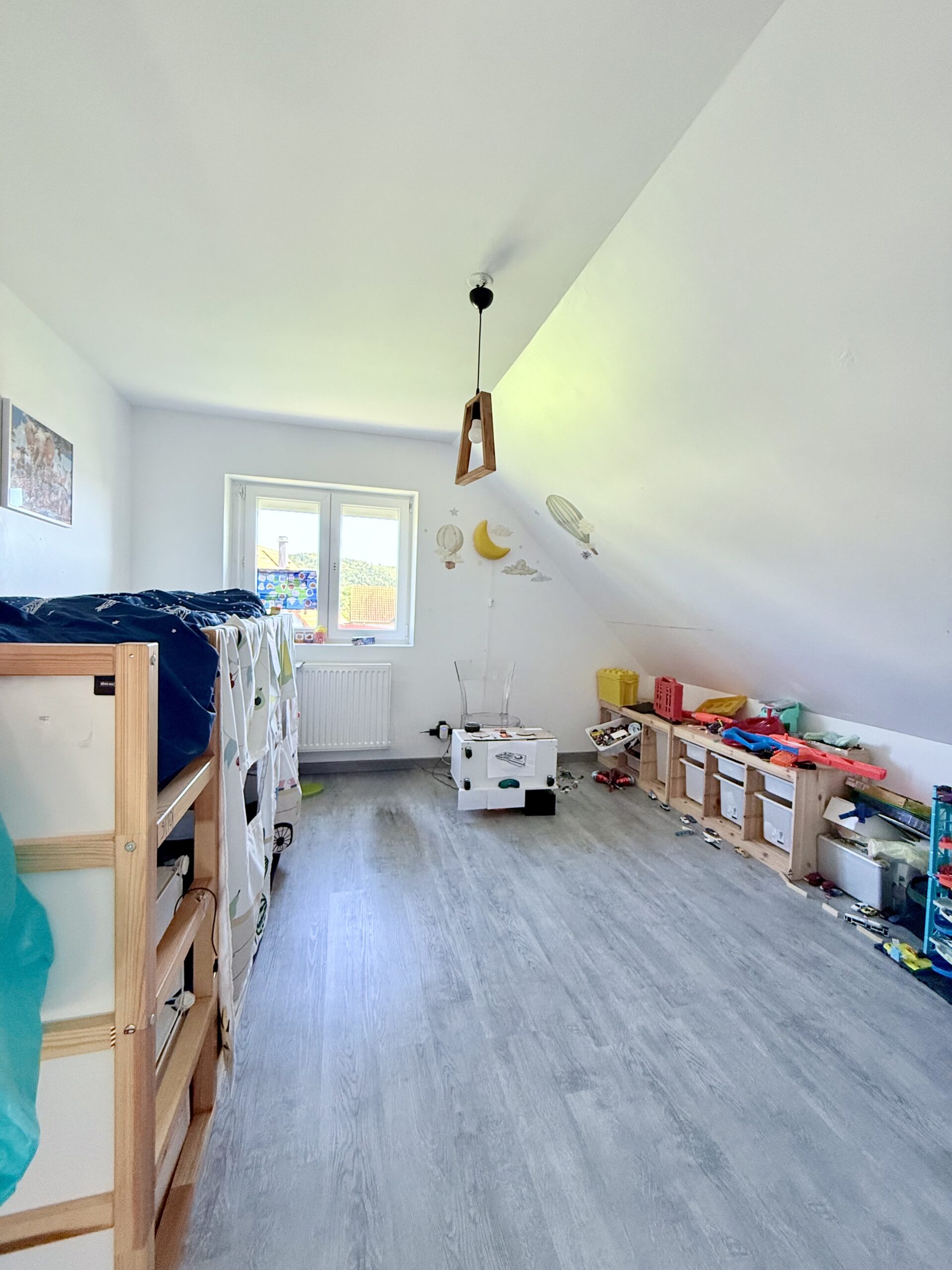 À l’étage, vous découvrirez une grande mezzanine pouvant servir d’espace bureau ou de coin détente, trois chambres ainsi qu’une seconde salle de bains, parfaitement adaptée à la vie familiale.